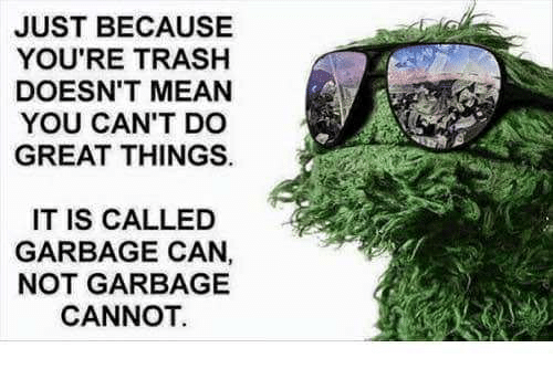 Am I the only one bothered by this? There are far greater problems to worry about, sure, but these trash people go out of their way to make more problems. I guarantee they are the same people who go out of their way to make fun of you for the pettiest reasons rather than making small talk or, better yet, no talk, who give you trite and/or sarcastic clichés when you absolutely don’t need them, and who purposely make things more difficult just to complain about them. Not only do they not add value to their interactions with others, they go out of their way to make those around them feel worse about themselves. These are trash people and you don’t need them in your life. I don’t, anyway. We may be trash as well in our own unique ways, but we can do great things. They, on the other hand, are the garbage cannots. This bothers me, even when I know that I shouldn’t let it.